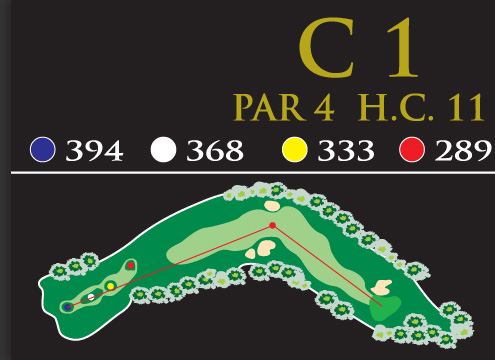 The first hole is medium length par 4 and a relatively easy opening hole. The tee shot must be played just left of the two fairway bunkers leaving a mid iron to the green. The green is relatively large with a lone bunker guarding the front left. Players who choose to play their tee shot on the left half of the fairway will have to negotiate this greenside bunker.
