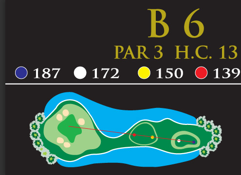 มีอุปสรรคน้ำทั้งด้านหน้าและด้านข้างซ้าย-ขวา กรีนล้อมรอบด้วยบ่อทราย หลุมนี้กรีนยกสูง ซ้ายและขวาจะมีบังเกอร์เป็นหลุมลึก ยากต่อการขึ้นกรีน