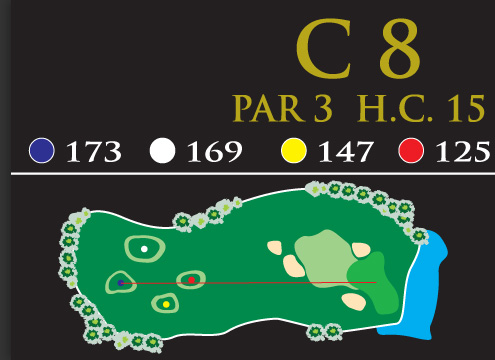 ซึ่งต้องใช้เหล็กขนาดกลางในการตีเพื่อให้ถึงกรีน การตกบนกรีนจะไม่ใช่ปัญหา